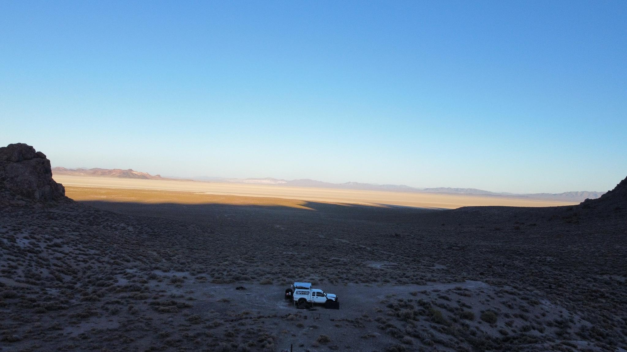 Drone Shot showing the Tacoma the Black Rock Desert in the background